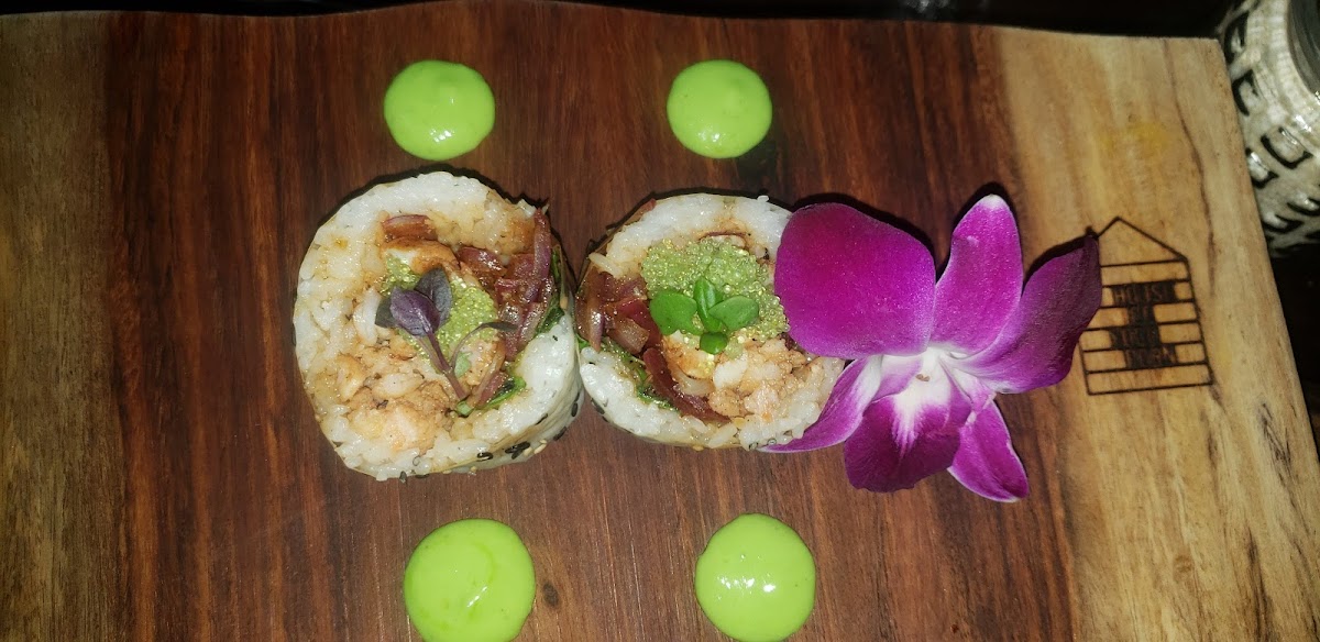 I am stingy with five stars. If I give it five stars, that means if I'm in that town, I want to go there again! He calls his dishes shushie. I don't know, but I am not usually a big fan of sushi, and this food was great! Great! We had a lovebird special and it was several courses all served special cocktails. The wine was flowing. The atmosphere is small and intimate. There were only eight people in the whole place the night that we went. The restaurant might fit 16-20. If it were completely filled. From the way that they do everything, it is obvious that is what they want it to be. The experience is interactive with the chef explaining each dish. The server (wife) brought each dish with a unique and fun presentation. I can't say I've ever had a meal like this. It was so fun and interesting! And, to top it off, the food was excellent!